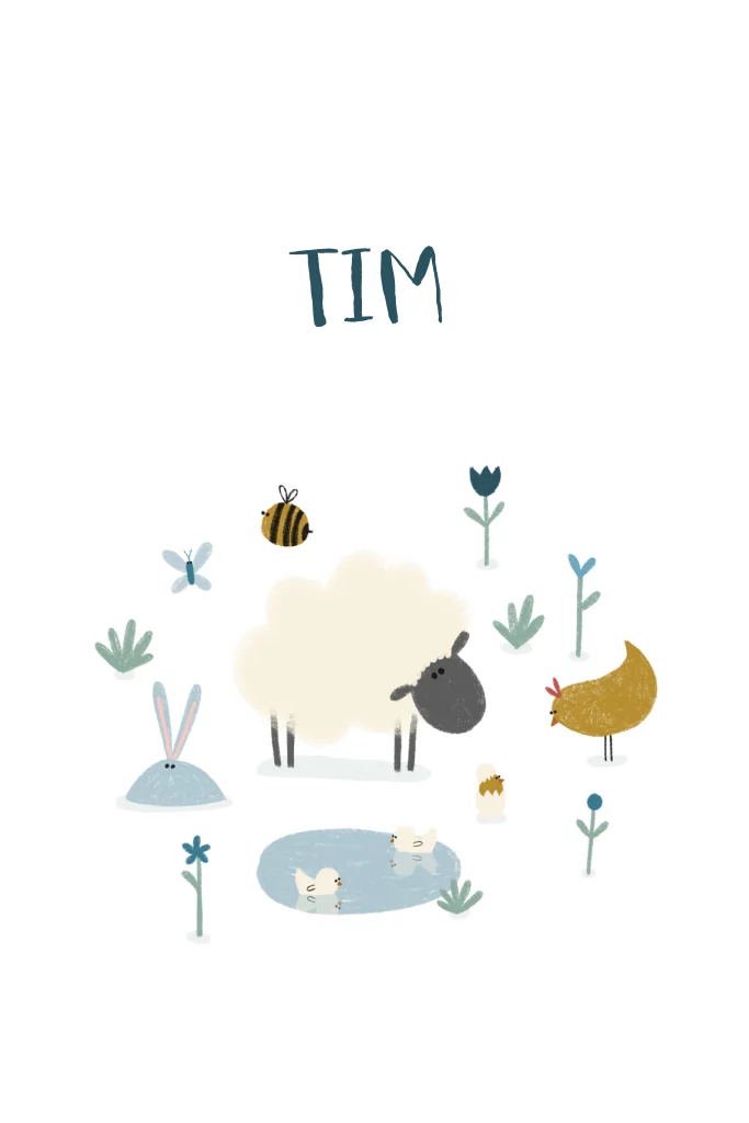 Een geboortekaartje met vrolijke boerderij diertjes. Een gezellig Hollands lente kaartje!