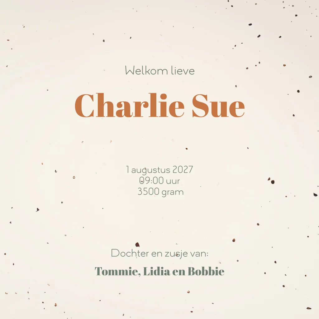 Een vrolijk, lief en rustig geboortekaartje met bosdieren rondom de naam van je kindje. Dit kaartje is heel erg geschikt voor het drukken op duurzaam papier, omdat er weinig inkt gebruikt wordt en contrasterende donkere kleuren. De achtergrond is een voorbeeld, bestel een proefdruk zodat je duidelijk kunt zien hoe de het kaartje gaat worden!