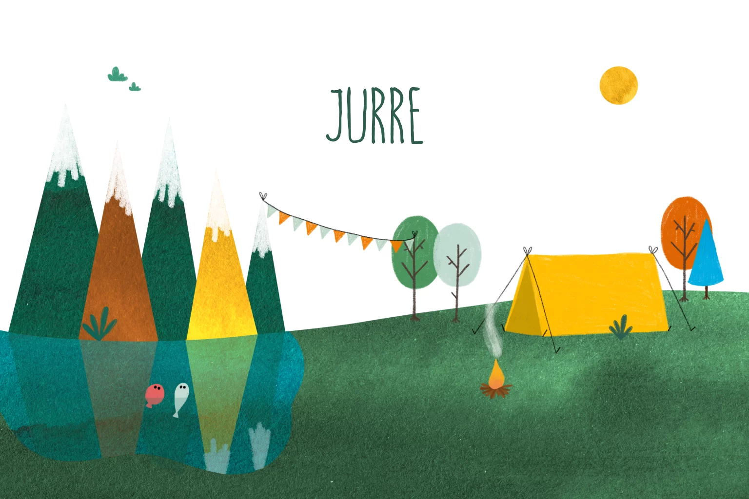 Een geïllustreerd geboortekaartje met een waterverf landschapje met vrolijke details zoals een kampvuurtje. Liever een andere kleurstelling? Stuur me even een mailtje!