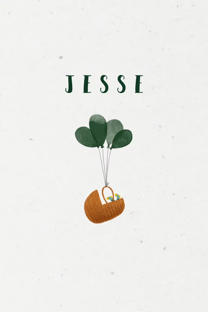 Een schattig minimalistisch kaartje met een mozesmandje en ballonnen. Op de achterkant neem je een kijkje in het mandje. Dit kaartje is heel erg geschikt voor het drukken op duurzaam papier, omdat er weinig inkt gebruikt wordt en contrasterende donkere kleuren. De achtergrond is een voorbeeld, bestel een proefdruk zodat je duidelijk kunt zien hoe de het kaartje gaat worden! Let op: er kan geen wit gedrukt worden op duurzaam papier.