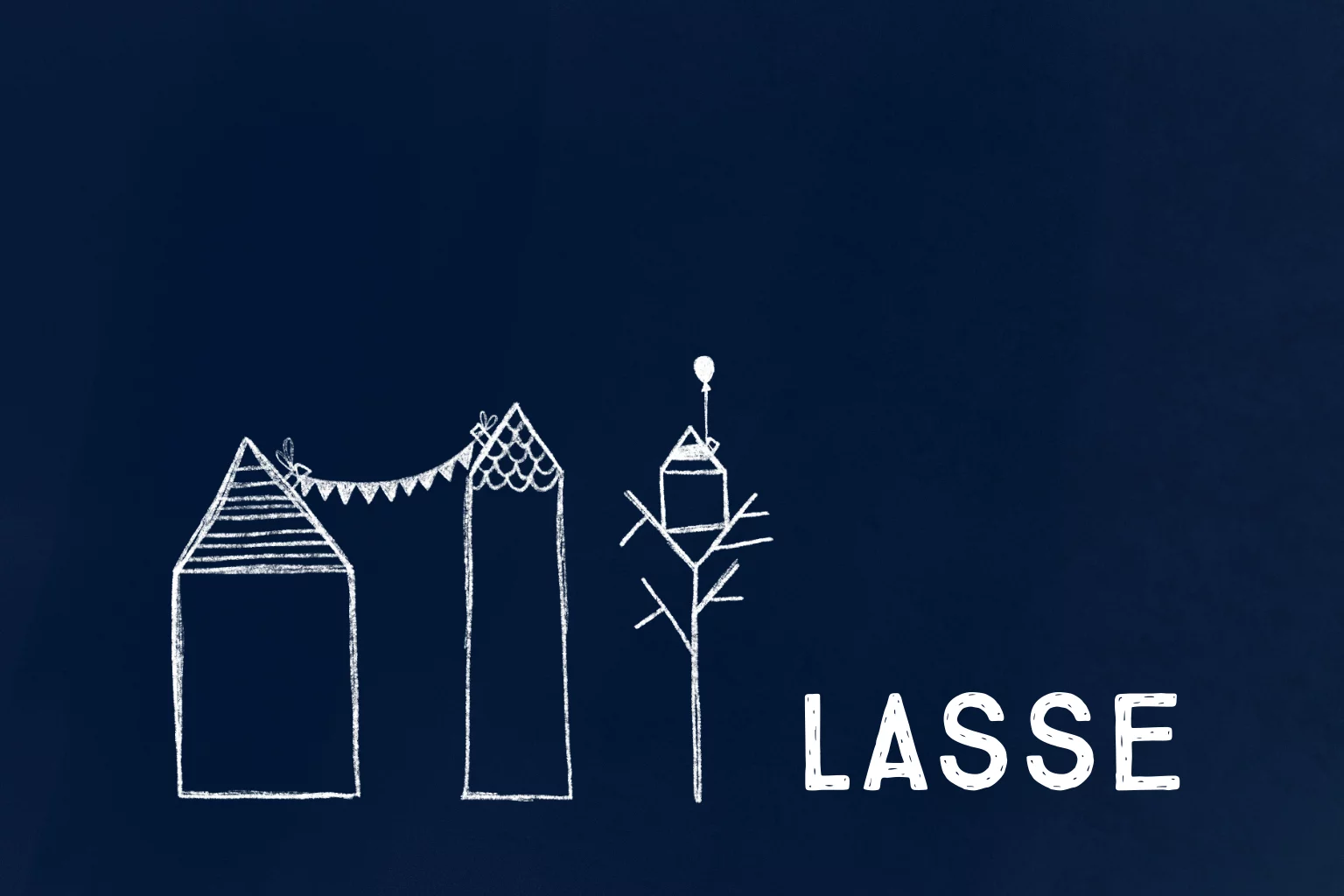 Een minimalistisch kaartje met krijt illustraties op een navy blue achtergrond.