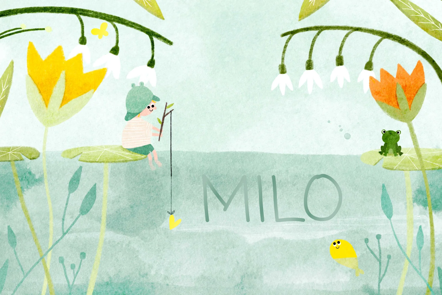 Een uniek geïllustreerd geboortekaartje met een vrolijke waterverf vijver waar een kindje een hartje in hengelt. Het leuke aan dit kaartje zijn de hoogglans details, zoals het vlindertje, de naam en het hartje. Je kunt natuurlijk ook gewone kleuren kiezen hiervoor, zonder glans. Andere huids- of haarkleur? Stuur een berichtje en ik pas het kosteloos aan!