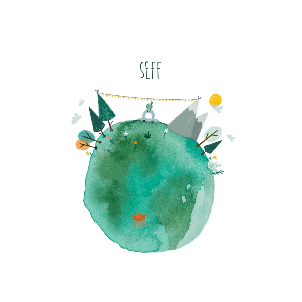 Een avontuurlijk kaartje met een wereldbol en een autootje om je zoontje voor te stellen aan de wereld. Voor echte reizigers, avonturiers en mensen die van de natuur houden.