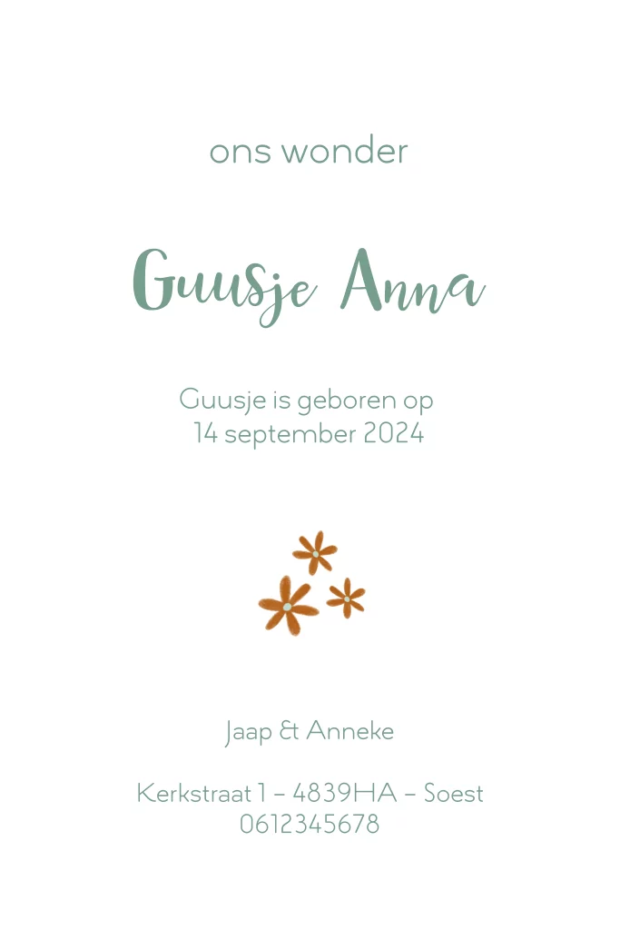 Dit lieve minimalistische kaartje heeft schattige bloemetjes en een houten hartje. Let op: het houten hartje in het ontwerp wordt niet afgedrukt, dit is om aan te tonen waar je het hartje zelf kunt plakken. Bestel de houten hartjes bij Extra's.