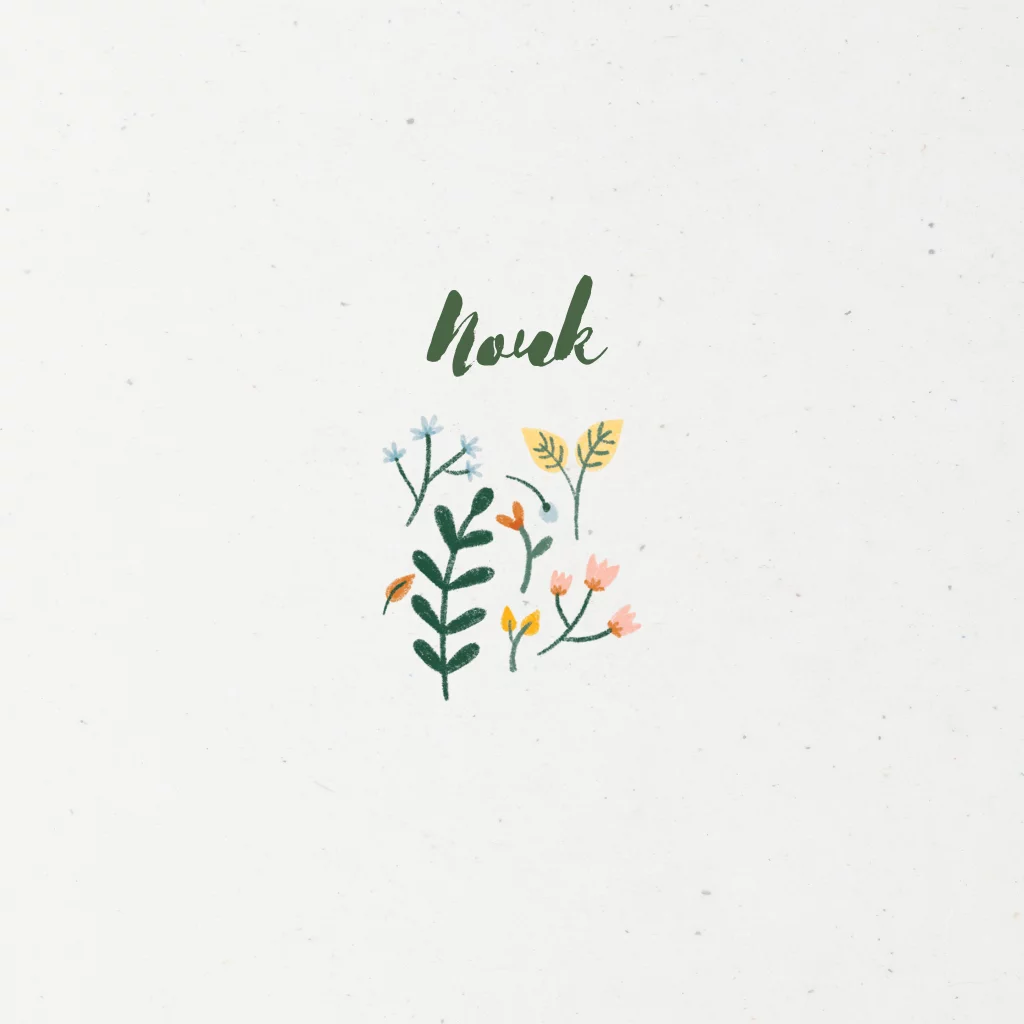 Een lief rustig minimalistisch geboortekaartje. Met kleine bloemetjes en op de achterkant een vlinder.