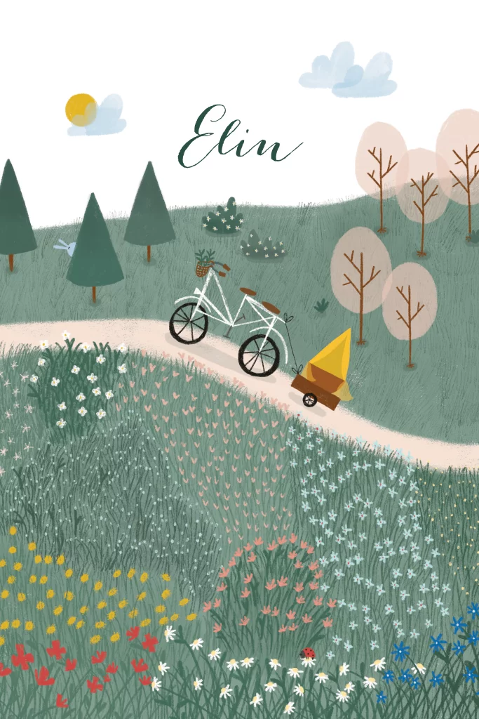 Een kaartje met een verhaaltje, vol natuur, bloemen en planten. Ben je een single ouder of vind je dit kaartje leuk voor een grote broer of zus? Dan kun je het losse zadeltje achterop verwijderen.