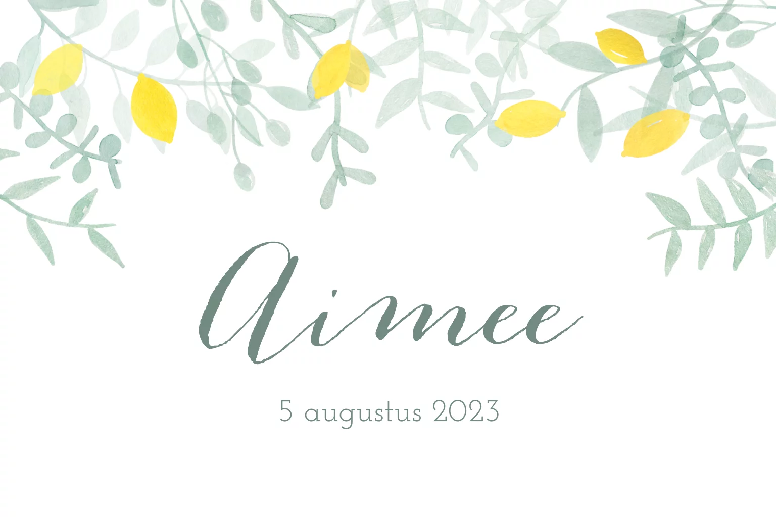 Zomers botanisch geboortekaartje met een rustige vormgeving.