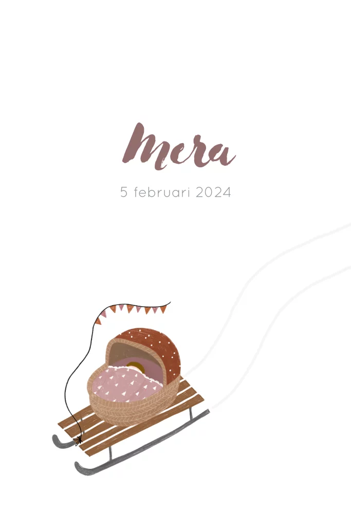 Geboortekaartje slee wiegje meisje