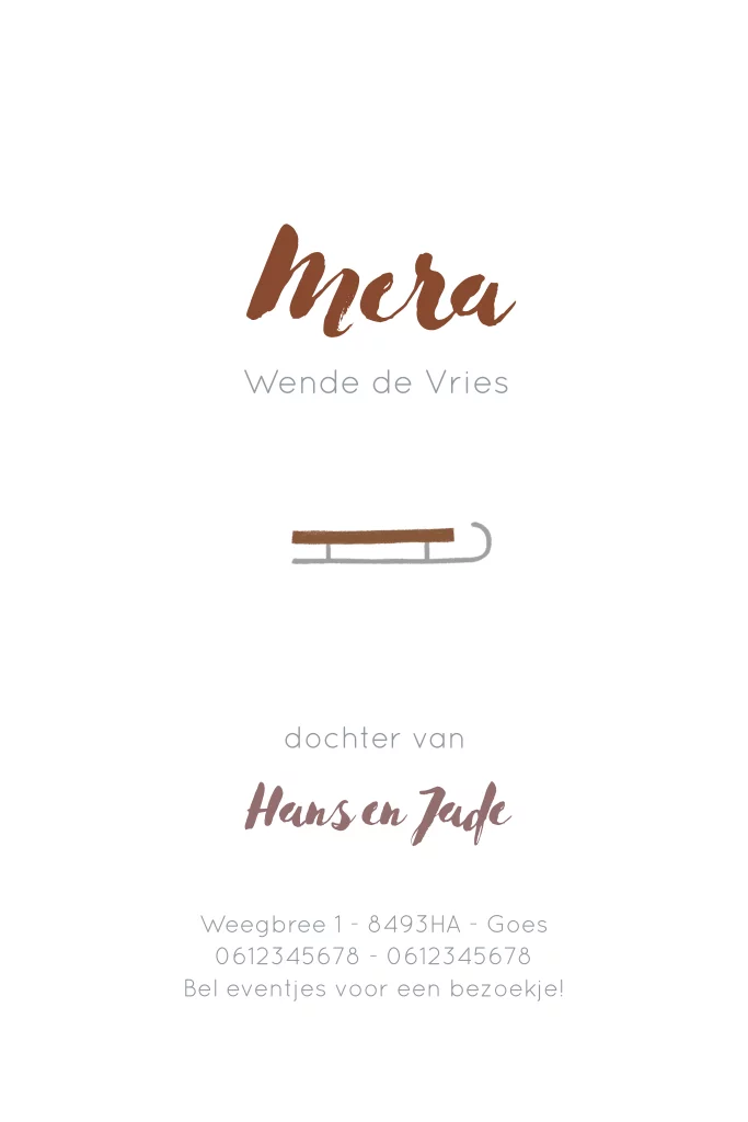 Een lief rustig geboortekaartje met een wiegje en een slee. Liever een kleur anders? Mail me even!
