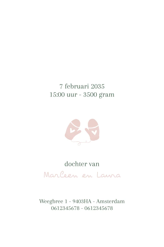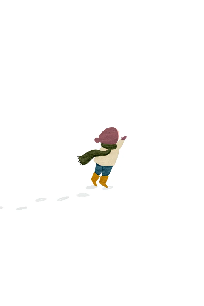 Een minimalistisch rustig geboortekaartje voor een meisje, met een illustratie van een meisje die op haar teentjes een regenboogfolie sneeuwvlok probeert te pakken.