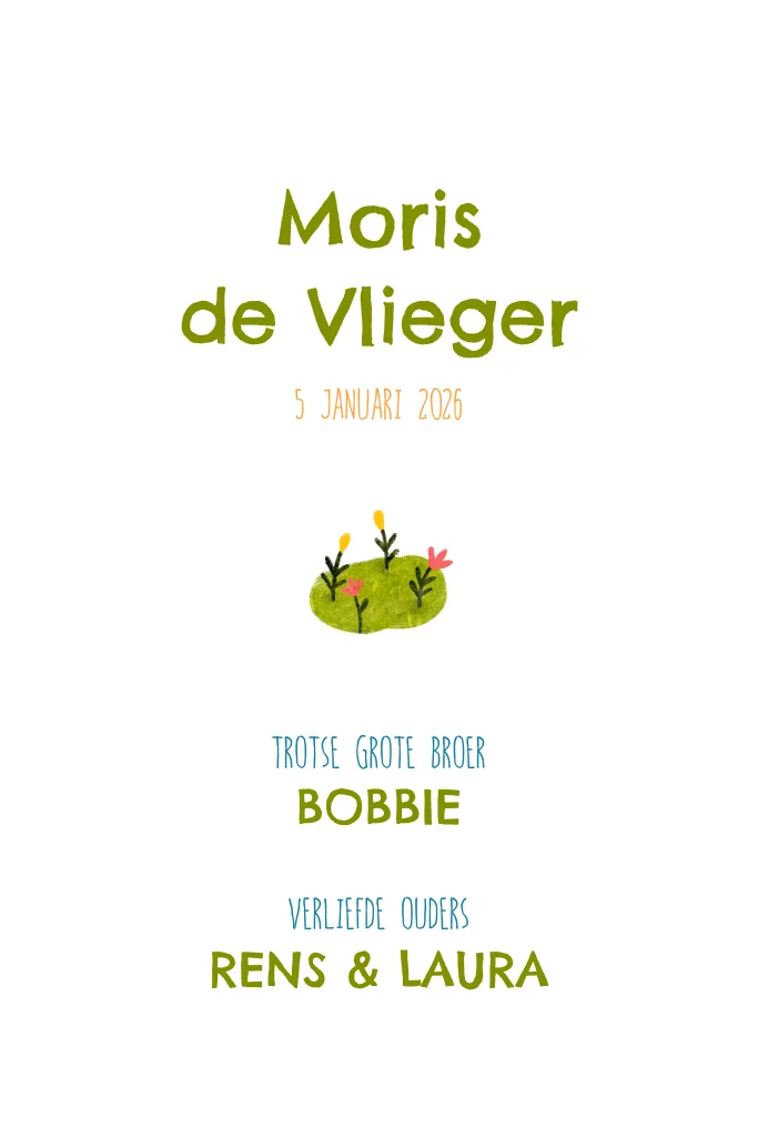 Geboortekaartje grote broer jongen pluktuin bloemen