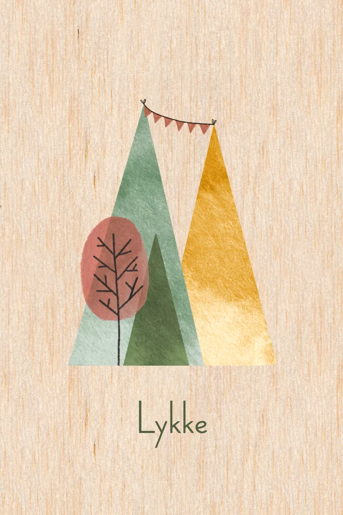Een rustig geboortekaartje gedrukt op echt hout, met een waterverf bergen en een boompje. Liever andere kleuren? Mail me!