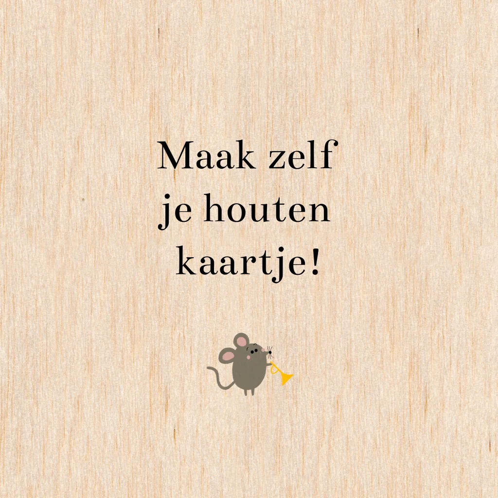 Een blanco, staand houten geboortekaartje. Je kunt het geboortekaartje naar wens opmaken.