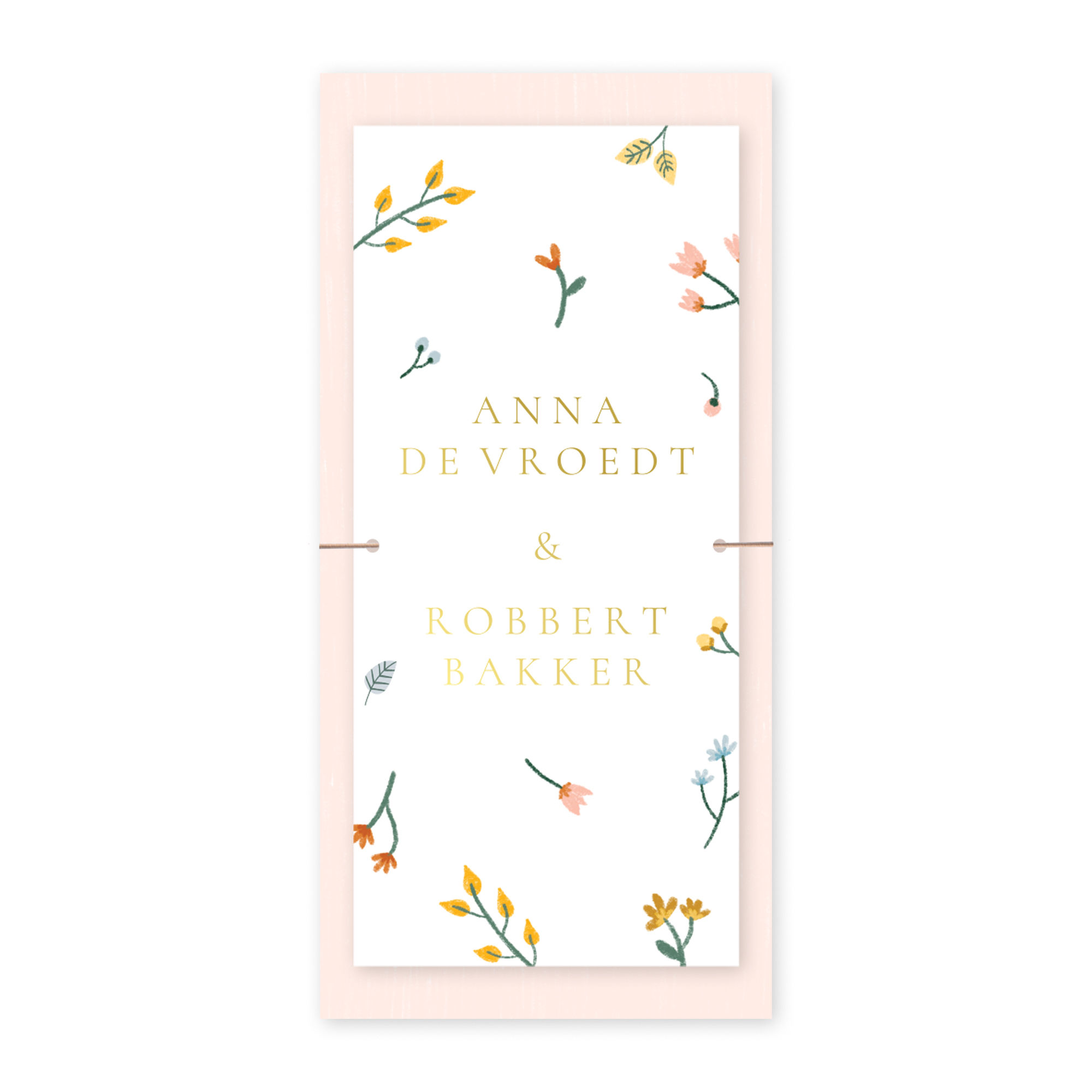 Label trouwkaart bloemen patroon goudfolie