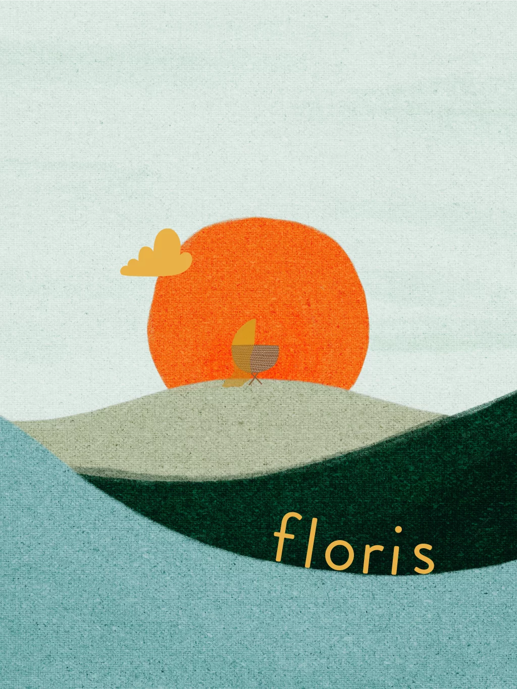 Een lieve en vrolijke geboorteposter met een illustratie van een landschap met ondergaande zon. Deze poster past mooi bij het geboortekaartje.