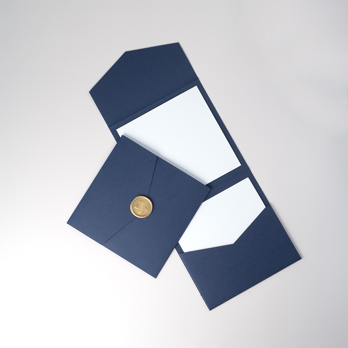 Rich Navy pocketfold voor vierkante kaarten van 13 x 13 cm. Formaat pocketfold: 14,5 x 14,5 cm. Kies voor envelopmaat 16 x 16 cm.