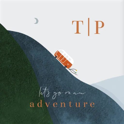 Een tegeltje met landschap en volkswagenbusje. Leuk om te geven als trouw cadeau en om te krijgen. Of geef jezelf een blijvende herinnering aan de trouwdag en trouwkaart.
