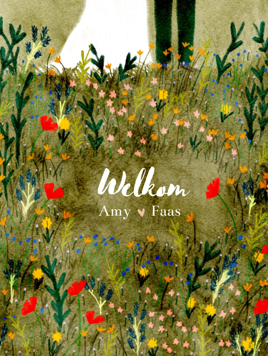 Ontvang jullie gasten in stijl met dit sfeervolle welkomstbord, passend bij de trouwkaart, save the date, menukaart en naamkaartjes uit dezelfde set. Dit bruiloftsbord is perfect voor een zomerse bruiloft, gevuld met een unieke illustratie van een bruidspaar staande in een zee van wildbloemen.