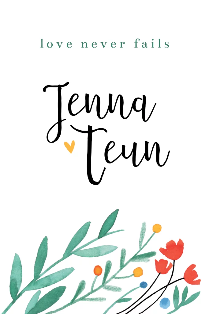 Een feestelijke trouwkaart met waterverf illustraties van takjes en klaprozen.