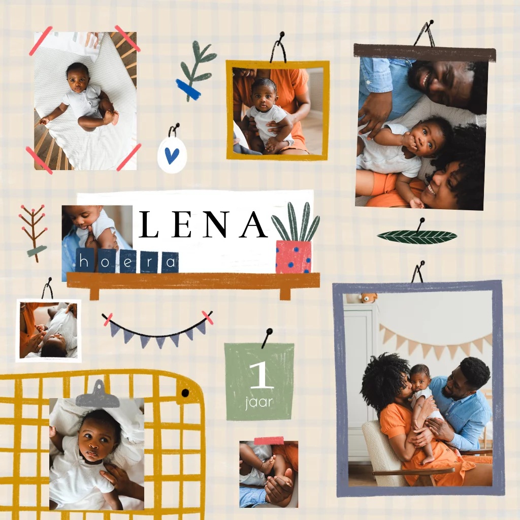 Een super leuke uitnodiging voor een kinder verjaardag, waarbij je allerlei foto's kunt toevoegen. Je kunt alle elementjes ook naar wens veranderen in kleur.