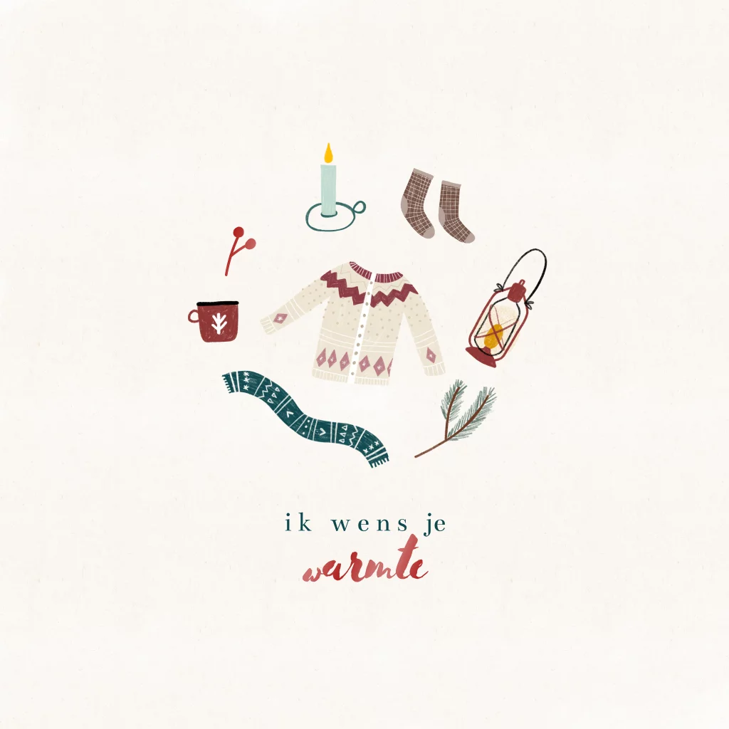 Kerstkaart Ik wens je warmte, knusse illustraties