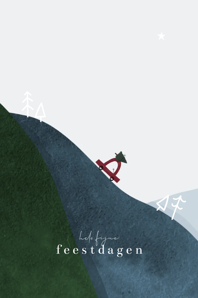 Een lieve rustige kerstkaart met waterverf landschap en een schattig autootje met kerstboompje bovenop. Bewerk het kaartje volledig naar wens!