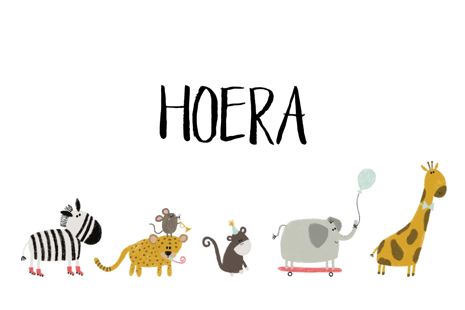 Een wenskaart met een parade van feestbeesten, voor een jarige!