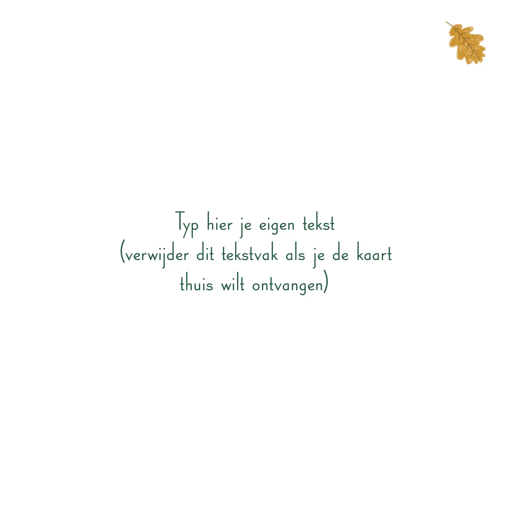 Een wenskaart met een fijne stapel herstbladeren en goudfolie.